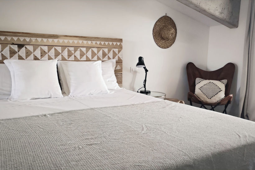 Located on the first floor, this beautifully spacious room offers a cozy queen-size bed, a living area and an en-suite bathroom with a rain shower. Floor-to-ceiling doors open out to a private terrace where you can unwind in your own comfortable lounge area. Our signature bohemian style flows throughout, paired with simple modern comforts like air conditioning, Wi-Fi, satellite TV, and a Bluetooth speaker — everything you need for a relaxed stay.